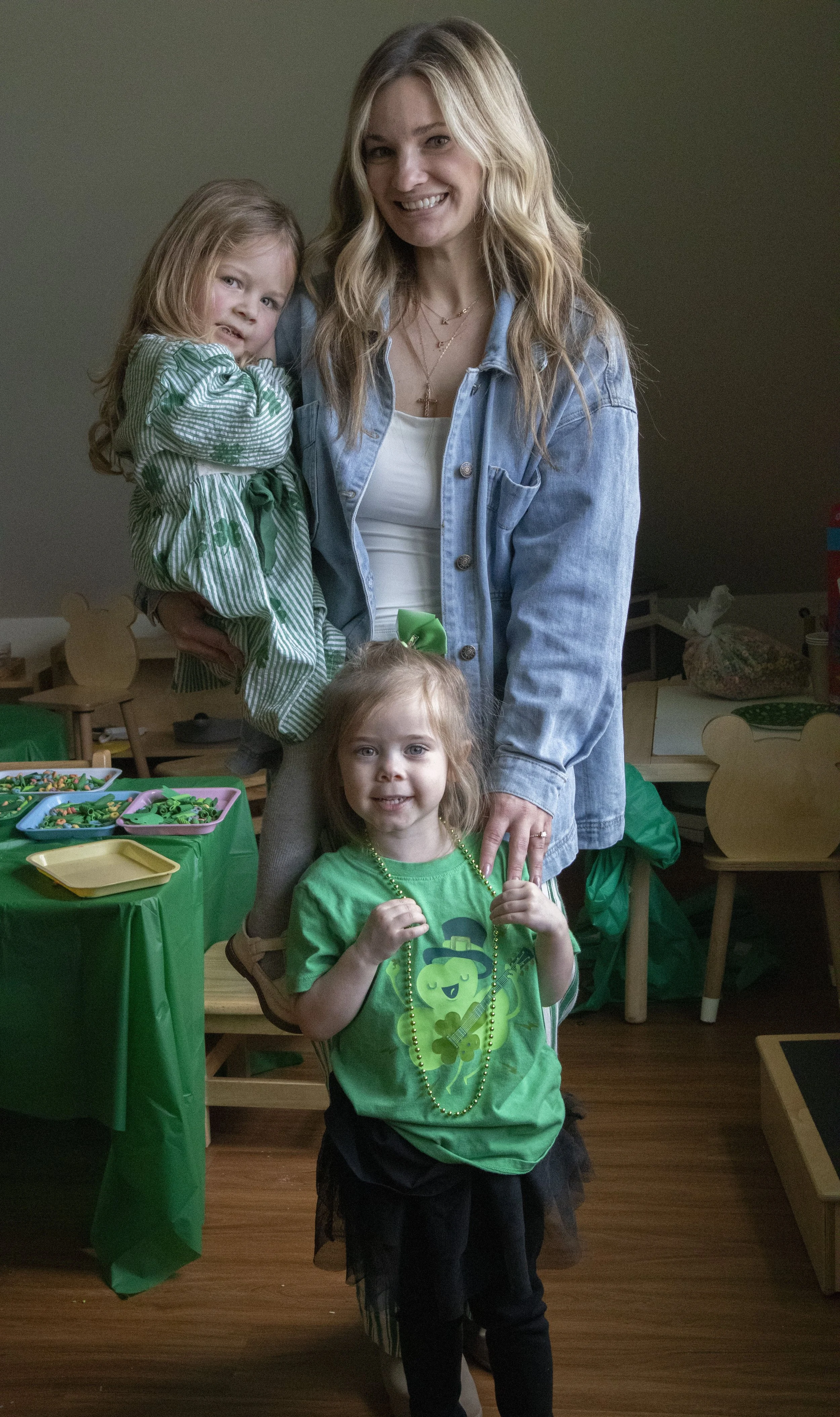 Head of School Jillian Johncox visits the older toddler room at Grace Montesorri Preschool. Daughter Kennedy, 3, immediately asked for a hug, and Claire Reppert, 3, wanted in on the photo-taking too.
